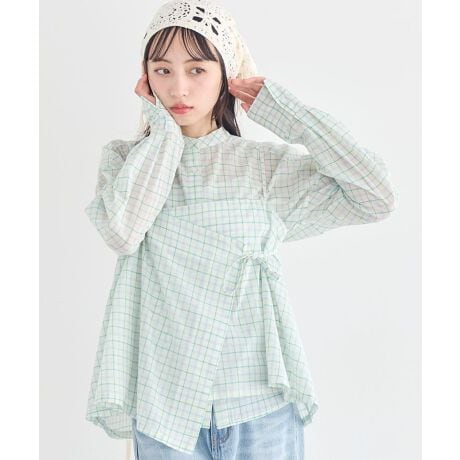 軽やかチェックで楽しむ、大人のレイヤードスタイル。やさしい色合いのマドラスチェックが目を引く、レイヤードコーデを楽しめるセットアイテムです。軽やかなシアー素材のシャツはほどよい透け感があり、季節感のある爽やかなスタイルを演出します。首元はバンドカラーデザインですっきりとした印象に仕上がり、上品な雰囲気をプラスしてくれます。エプロンライクなビスチェを重ねることで、シンプルなシャツスタイルがぐっと華やかな印象になります。サイドのリボンデザインがアクセントになり、自然とメリハリのあるシルエットを作ってくれるのも魅力です。セットで着ればトレンド感のあるコーディネートが簡単に完成し、単品使いすれば着こなしの幅も広がります。カジュアルなお出かけや休日のリラックススタイルなど、日常のさまざまなシーンで活躍してくれるアイテムです。透け感[ややあり]