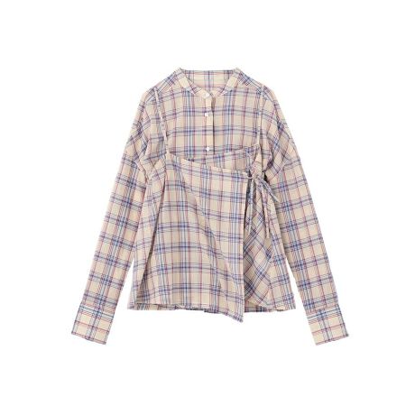 軽やかチェックで楽しむ、大人のレイヤードスタイル。やさしい色合いのマドラスチェックが目を引く、レイヤードコーデを楽しめるセットアイテムです。軽やかなシアー素材のシャツはほどよい透け感があり、季節感のある爽やかなスタイルを演出します。首元はバンドカラーデザインですっきりとした印象に仕上がり、上品な雰囲気をプラスしてくれます。エプロンライクなビスチェを重ねることで、シンプルなシャツスタイルがぐっと華やかな印象になります。サイドのリボンデザインがアクセントになり、自然とメリハリのあるシルエットを作ってくれるのも魅力です。セットで着ればトレンド感のあるコーディネートが簡単に完成し、単品使いすれば着こなしの幅も広がります。カジュアルなお出かけや休日のリラックススタイルなど、日常のさまざまなシーンで活躍してくれるアイテムです。透け感[ややあり]