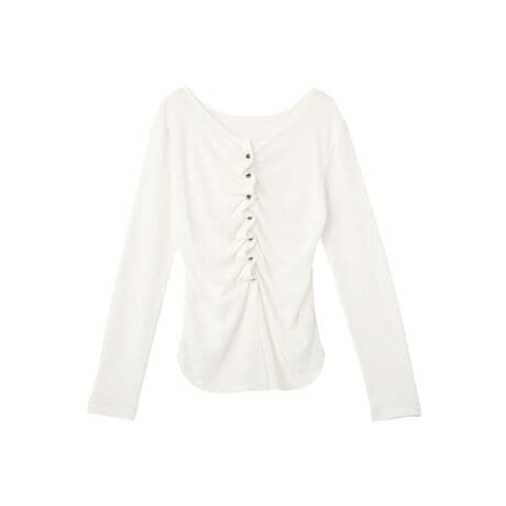 ほどよい透け感のあるワッフル素材が、軽やかでやさしい印象を演出してくれるトップスです。