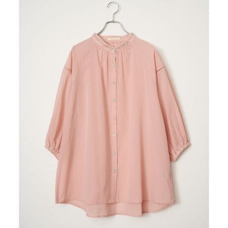 [型番:26012874]襟もとにオリジナル刺繍をあしらった、表情豊かなギャザーチュニック。やわらかなギャザーがふんわりと広がり、やさしい雰囲気のシルエットを演出します。【素材】ふんわり軽い綿混素材。【デザイン】前ボタン、チュニック丈。【ポイント】襟もとにオリジナル刺繍を施した、エクリュシリーズ春。肩にははしごレースを入れた、抜け感のあるチュニックです。ふんわりエスニック感ある一枚。デニムパンツとの相性も◎