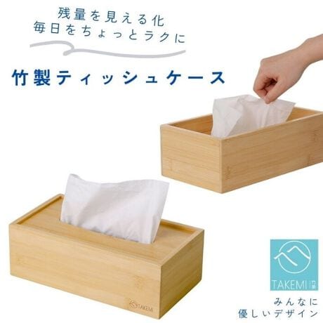 竹美TAKEMIの天然竹を使用した、あたたかみのあるティッシュケース。お部屋にすっと馴染むナチュラルデザインです。
