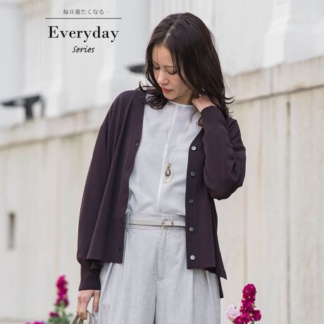 同シリーズの5分袖ニットと合わせてツインセットとして着用すれば、軽やかで統一感のある大人のスタイリングが完成します。