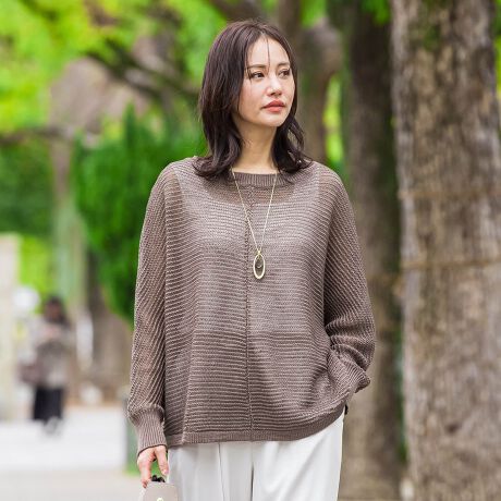 透け感のある軽やかな編地と、体をふんわり包み込むゆったりシルエットで、着るだけでこなれた印象に。