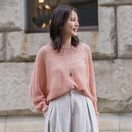 透け感のある軽やかな編地と、体をふんわり包み込むゆったりシルエットで、着るだけでこなれた印象に。