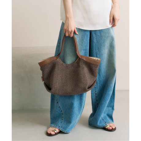 上品な風合いが魅力のラフィア調シートを使用したトートバッグ。