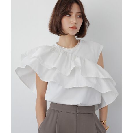 マルチに使えるフリルがセットになったシンプルなノースリーブカットソーです。