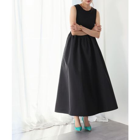 異素材ドッキングフレアロングワンピース