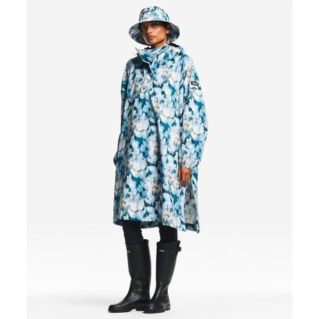大胆なプリントが映える、防水仕様のポンチョ。