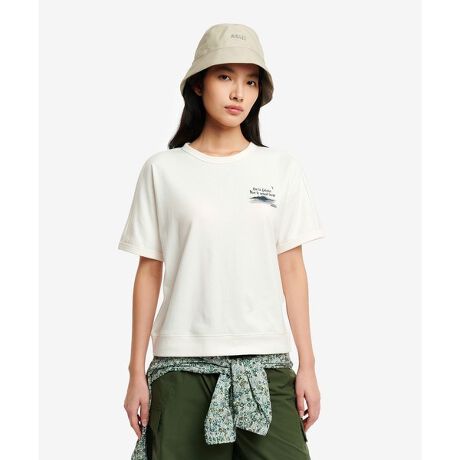 さらりとした着心地に、左胸のシーズン限定グラフィック「崖から海へ」がさりげないアクセントを添えます。