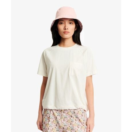 接触冷感機能を備えたオーガニックコットン素材の半袖ポケットTシャツ。