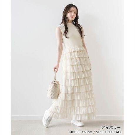 リブニットと軽やかなスカートを組み合わせ、女性らしいメリハリを描くニットドッキングワンピース。