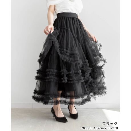 たっぷりと重ねられたチュールが裾に向かってボリューム感を生み出す、主役級チュールスカート。