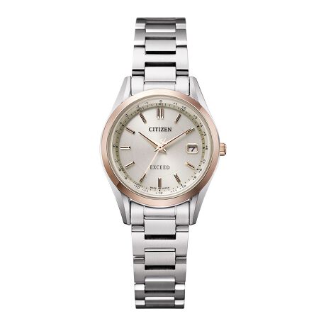 透明感のあるライトシルバー色のケースとバンド、サクラ色のベゼルを配したツートーンデザインが、ひときわエレガントな雰囲気を演出します。