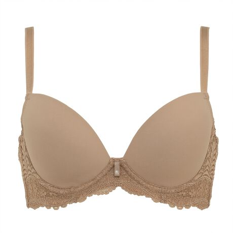 クラシカルでフェミニンなストレッチラッセルレースを使用した、アウターに響きにくい補整モールドカップブラです。