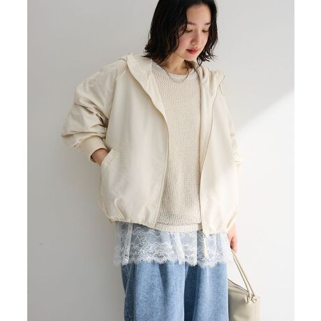 軽やかに品よく、毎日に寄り添う撥水ブルゾン撥水加工を施した素材で、天候を気にせず着用できるブルゾンです。さっと羽織れる軽さがありながら、程よくハリのある生地感で上品な印象に仕上がります。フード付きデザインは首元までやさしく包み込み、風や小雨から守ってくれる安心感があります。裾のドロストを調整することで、シルエットに変化をつけられるのも魅力です。カジュアルなパンツスタイルからスカートまで幅広く合わせやすく、通勤やお出かけ、旅行などさまざまなシーンで活躍します。季節の変わり目にも重宝し、日常使いしやすい一着です。透け感[なし]