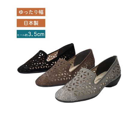 繊細なカットワークが目を惹く、上品なフラットシューズ。
