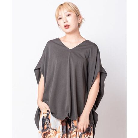 Vネックサイドドレーププルオーバー