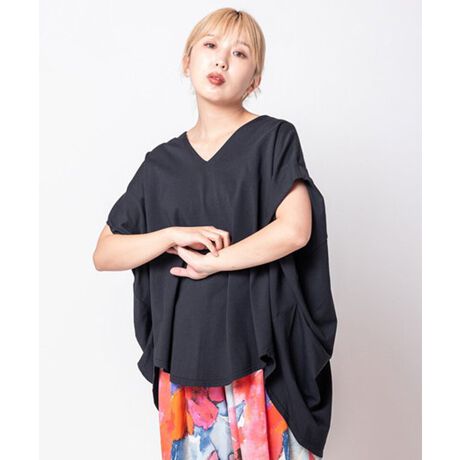 Vネックにドレープ、バックギャザー。