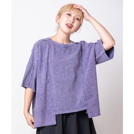 素材について: ケミカルウォッシュ加工の施されたややハリのあるTシャツ地/ケミカルプリントのシワになりにくいブラウス地