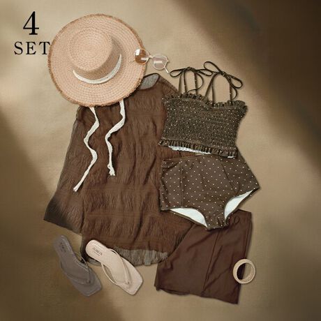 ビキニ、ショーツ、ショートパンツ、トップスの4点セットです。