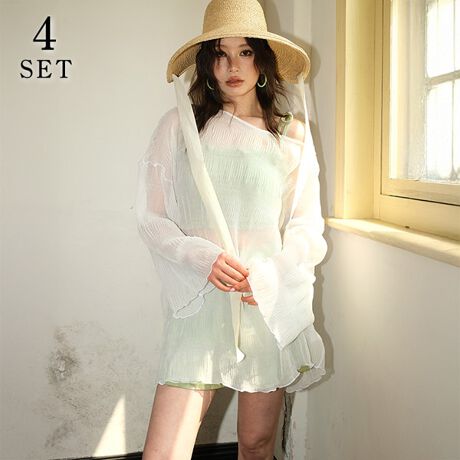 ビキニ、ショーツ、ショートパンツ、トップスの4点セットです。
