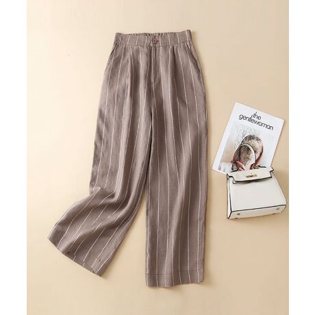 リラックス 綿麻コン ストライプワイドパンツ