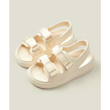 ■design/point:優れたデザインと快適な履き心地を兼ね備えた、ダブルストラップ仕様の子供用サンダル。シンプルなワントーンカラーが可愛らしく、どんな夏のコーディネートにもぴったり。柔らかいEVA素材を使用し、軽量で足に優しい履き心地を提供します。ストラップ部分にはマジックテープが付いており、簡単に着脱できるだけでなく、足の形やサイズに合わせてしっかりフィット。安定感のあるソールが子供の足元をしっかりサポートし、滑りにくい構造で安全性も抜群です。さらに、足の自然な動きをサポートするための柔軟なソール設計で、外遊びや水遊びなど日常のアクティビティやプールなどのレジャーに最適。通気性も考慮されたデザインで、長時間の着用でもムレにくく、快適な状態を保ちます。見た目の可愛さと機能性を兼ね備えたこのサンダルは、子供たちの夏の冒険にぴったりな一足です。ぜひ、この夏の定番アイテムとしてお子様のシューズボックスに加えてみてください。★商品のお気に入り登録 お気に入りアイテムの値下げ・再入荷・在庫1点などの通知を受け取ることができます。 ★ブランドのお気に入り登録 新商品や再入荷、セール、クーポン配布などお得な情報を受け取ることができます。※商品画像は撮影時の光や角度により、実物の色味と異なって見える場合がございます。※生産時期により色・素材・サイズ感・ゴム糊の出ることなど多少異なる場合がございます。予めご了承ください。