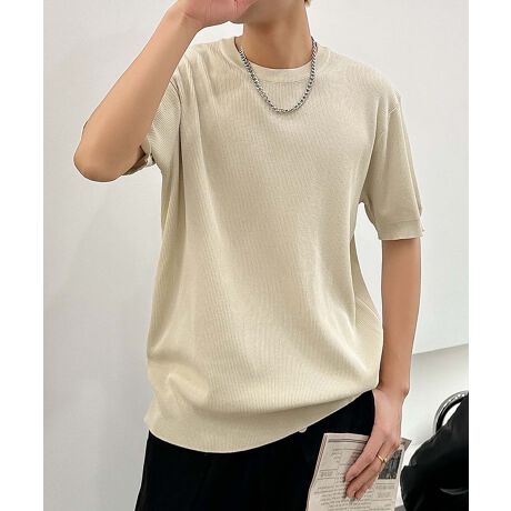 『シンプルなリブデザインが特徴の万能ニットTシャツ』