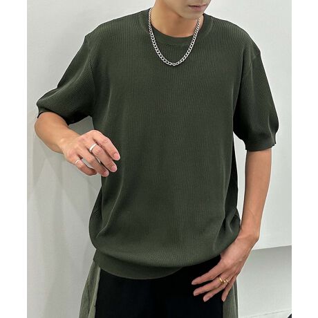 『シンプルなリブデザインが特徴の万能ニットTシャツ』