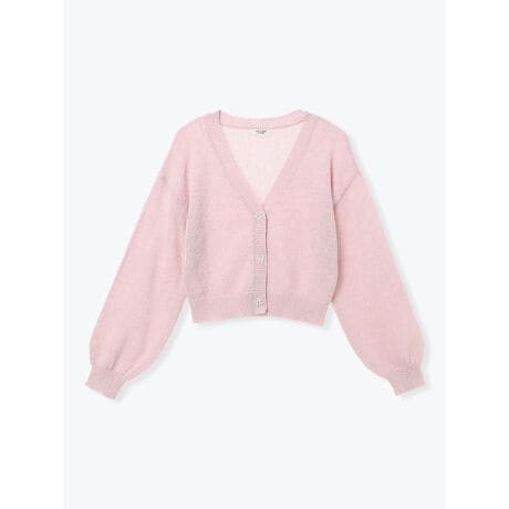 [型番:26550731035]やわらかなニット素材のカーディガン。リボンモチーフのボタンがフェミニンなアクセントを添えます。程よいショート丈とボリューム袖のバランスで、ワンピースに羽織ってきれいめに、デニムやワイドパンツを穿いて大人カジュアルにも。コーデにさりげないきらめきをプラスしてくれる、季節感のある一枚です。