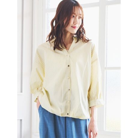 ストライプタケノコタックシャツブラウス