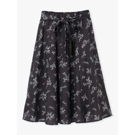 フロントリボン花柄ロングスカート