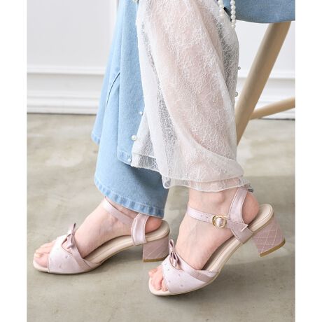 大人フェミニンなリボン付きストラップサンダル