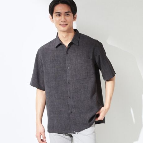 【LINO FINE】 リネンライク半袖シャツ UVカット/イージーケア/吸水速乾/洗濯機OK/セットアップ可