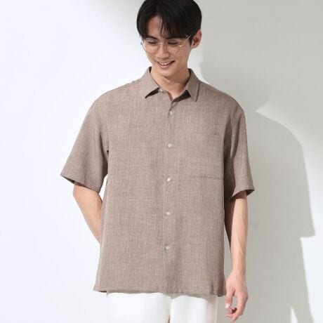【LINO FINE】 リネンライク半袖シャツ UVカット/イージーケア/吸水速乾/洗濯機OK/セットアップ可