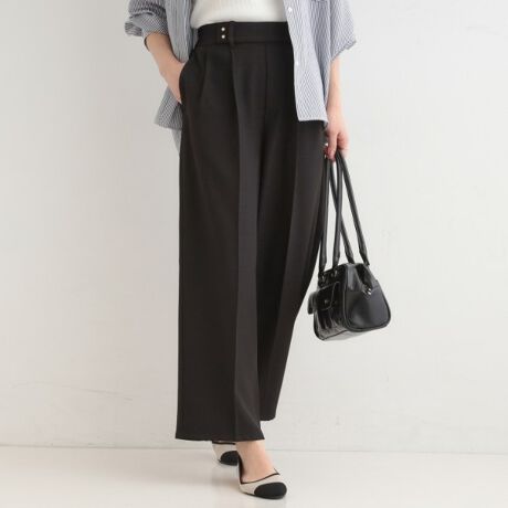 程よいゆとりのワイドシルエットで腰回りをカバーしつつ、細めのベルトループでバランス調整が可能。