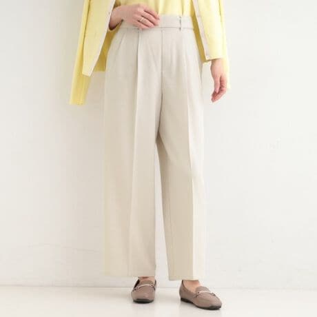 センタープレスとワンタックで脚長に見せるきれいめパンツ。