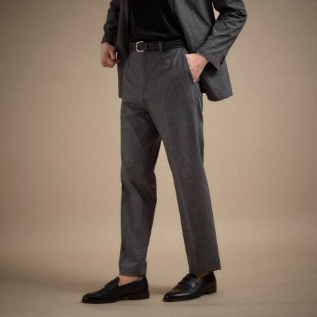 足元にかけスタイリッシュに魅せるスラックスを意識したテーパードシルエットのパンツになっています。