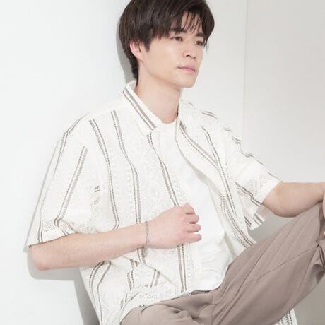 適度な落ち感とストライプ柄の編み地がポイントの1枚着として決まる半袖シャツ。