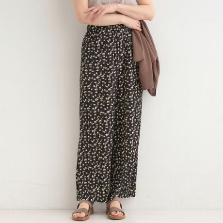 ランダムなプリーツ加工が施された上品なワイドシルエットで、脚のラインをさりげなくカバー。