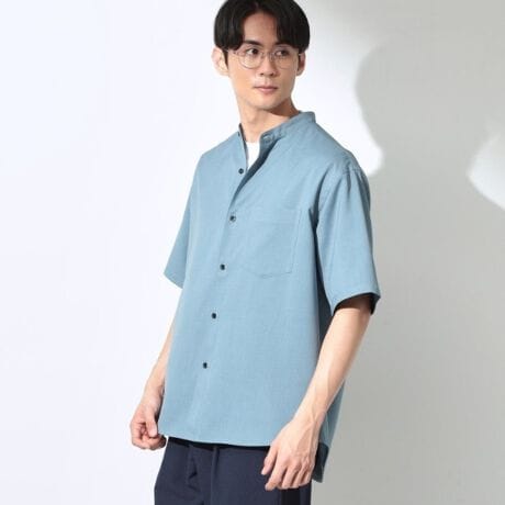 軽やかさと上品さを兼ね備えた、ライトテックス素材のバンドカラー半袖シャツ。