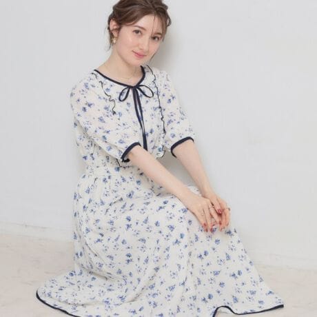 オフホワイトは襟、リボン、袖口、裾とフリルの端が配色になっていて、可愛さを引き締めてくれます。