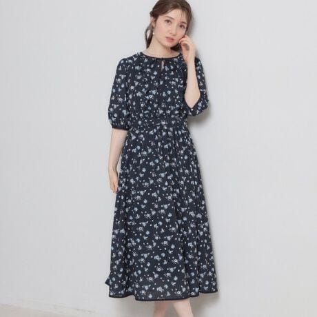 水彩画のような繊細な花柄プリントのワンピースです。