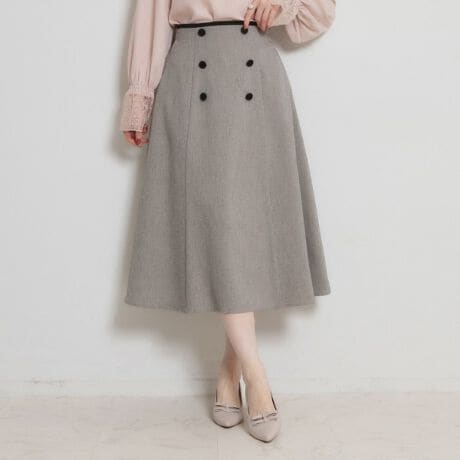 ウエスト端に配色パイピングをきかせたフレアスカートです。