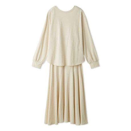 まるで部屋着のように快適な着心地ですが縦にジグザグステッチを入れモードに、高見えする1枚です。