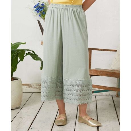 毎回大人気のペチコートパンツ。裾にかけて広がるシルエットとレースが女性らしい印象を後押し。繊細で細やかなレースをたっぷり施し、華やかに仕上げました。レイヤードが楽しめるペチコートパンツは一枚もっておくと便利なアイテムです。