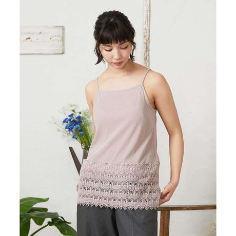 レイヤードスタイルにピッタリなキャミソール。キャミソールの裾に繊細な柄のレースをドッキングしました。キャミソールの肩紐にはアジャスターが付いており、組み合わせるアイテムに合わせて調節可能。ヒップにかかる丈感で体型カバーも叶えます。