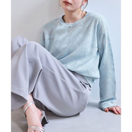 シアーメッシュ編みのニットで、ドライタッチな素材です。