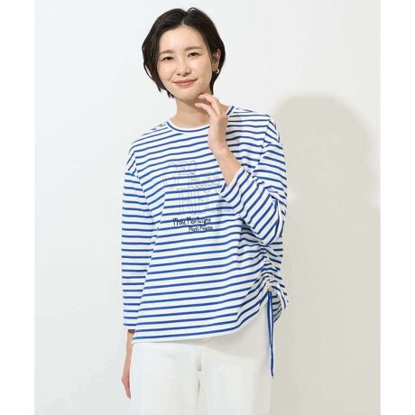 ドロストを絞ってアシンメトリーなデザインを楽しめるボーダーカットソー