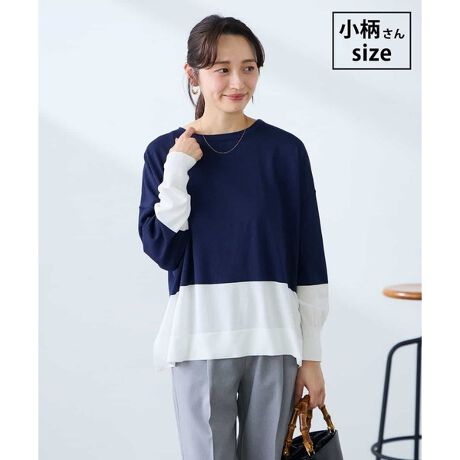 バイカラーデザインがアクセントになるゆったりニット。